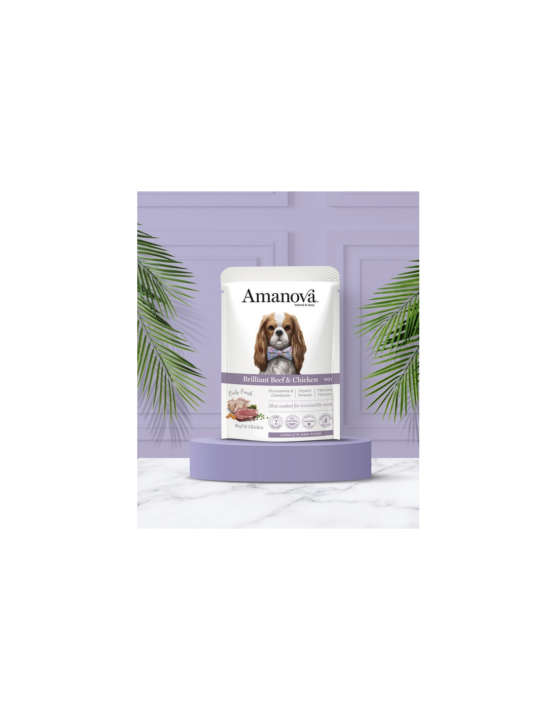 Amanova Brilliant Beef & Chicken to wyjątkowa, wilgotna karma dla psów dorosłych, stworzona z najwyższej jakości świeżego mięsa wołowego (35%) i kurczaka (30%). Wyróżnia się prostym, naturalnym składem, bez sztucznych dodatków i zbędnych wypełniaczy. Filozofia marki Amanova opiera się na wykorzystywaniu wyłącznie świeżego mięsa i składników pochodzenia naturalnego, co sprawia, że każdy posiłek jest zdrowy, pełnowartościowy i doskonale przyswajalny.