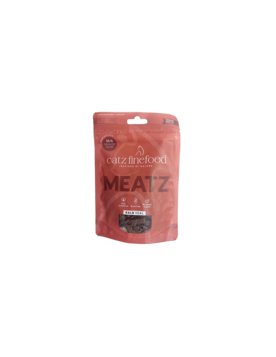Catz Finefood Meatz N.05 to chrupiące paski z 98% grillowanego i suszonego mięsa z cielęciny. Przysmaki Meatz są doskonałym i wysokiej jakości uzupełnieniem do mokrych karm.