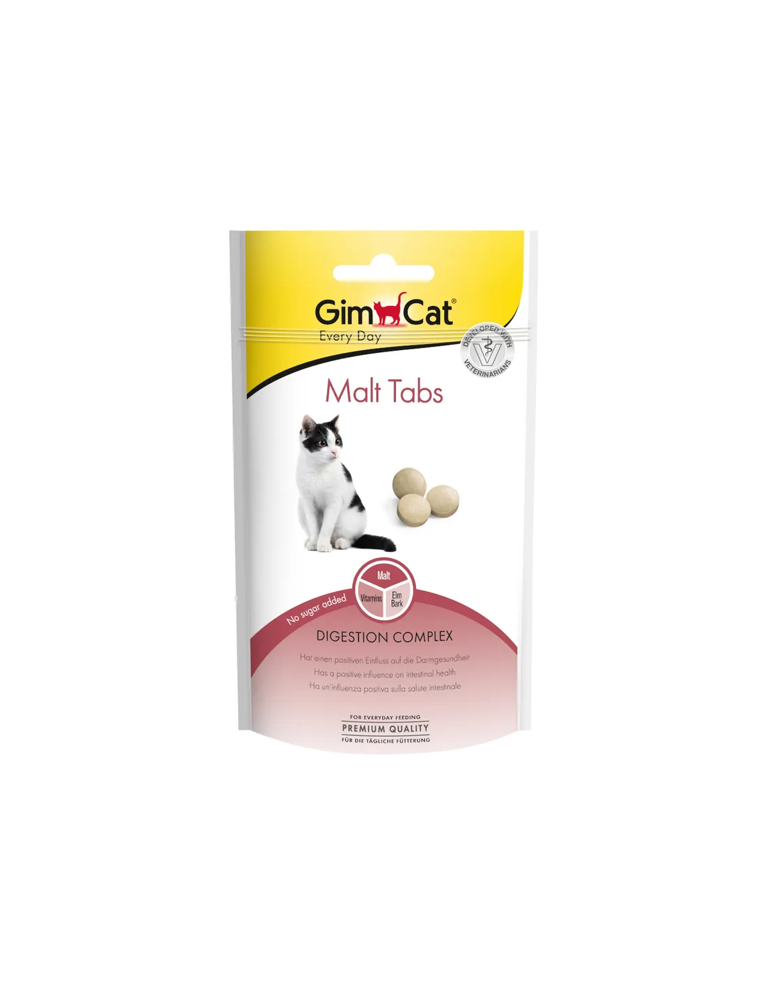 Malt Tabs pomagają w zapobieganiu tworzeniu się kul włosowych u kotów. Naturalny ekstrakt słodu i błonnik wspierają układ pokarmowy w trawieniu.