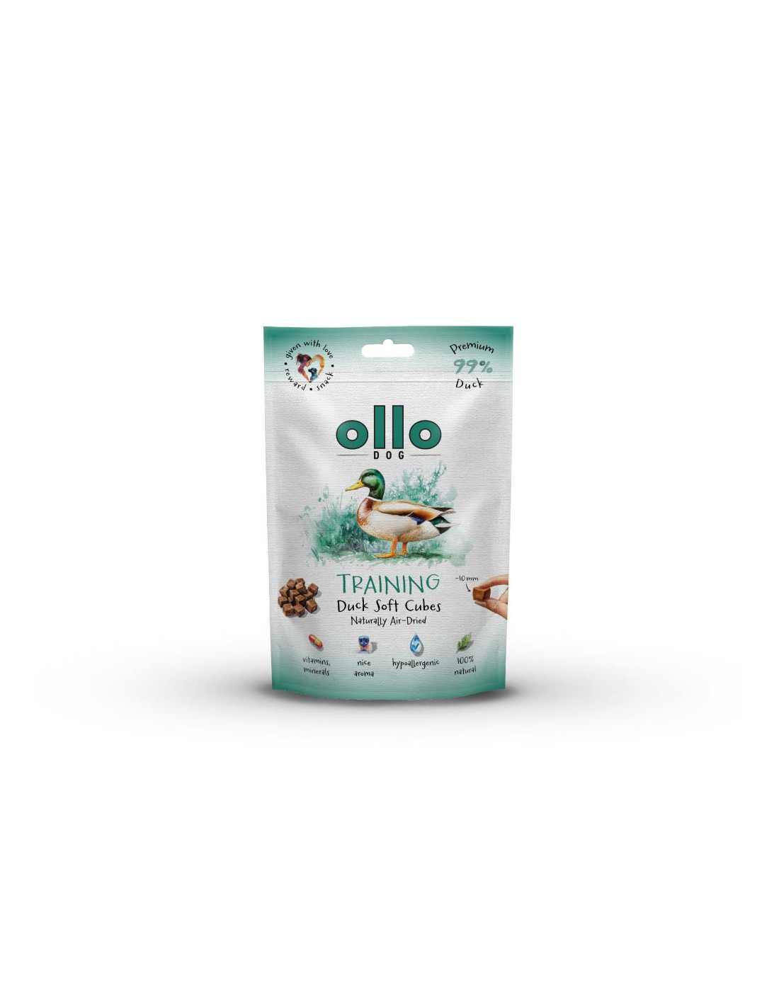 Przysmaki dla psa Ollo Air-Dried Training Duck Soft Cubes to naturalne, hipoalergiczne, monobiałkowe smaczki z kaczki. Są delikatnie suszone powietrzem. W kształcie kostek o wymiarach ok 10 mm. W 100% naturalny produkt, stworzony z myślą o psach wszystkich ras i w każdym wieku. Są miękkie i monobiałkowe, co jest niezwykle istotne dla psów z alergiami pokarmowymi oraz tych z wrażliwym żołądkiem.